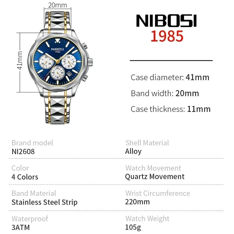 NIBOSI 2608 Luxury Watch Men Top Brand Wristwatch Chronograph Waterproof Luminous Date Men Watches