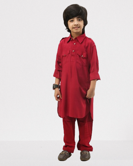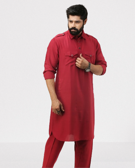 Traditional Pathani Khan Suit Set in Soft Comfortable Feel Cotton fabric. It has shoulder flaps, two buttoned pockets, cuff plus rollover sleeves and relaxed fit salwar Patiala pyjama.